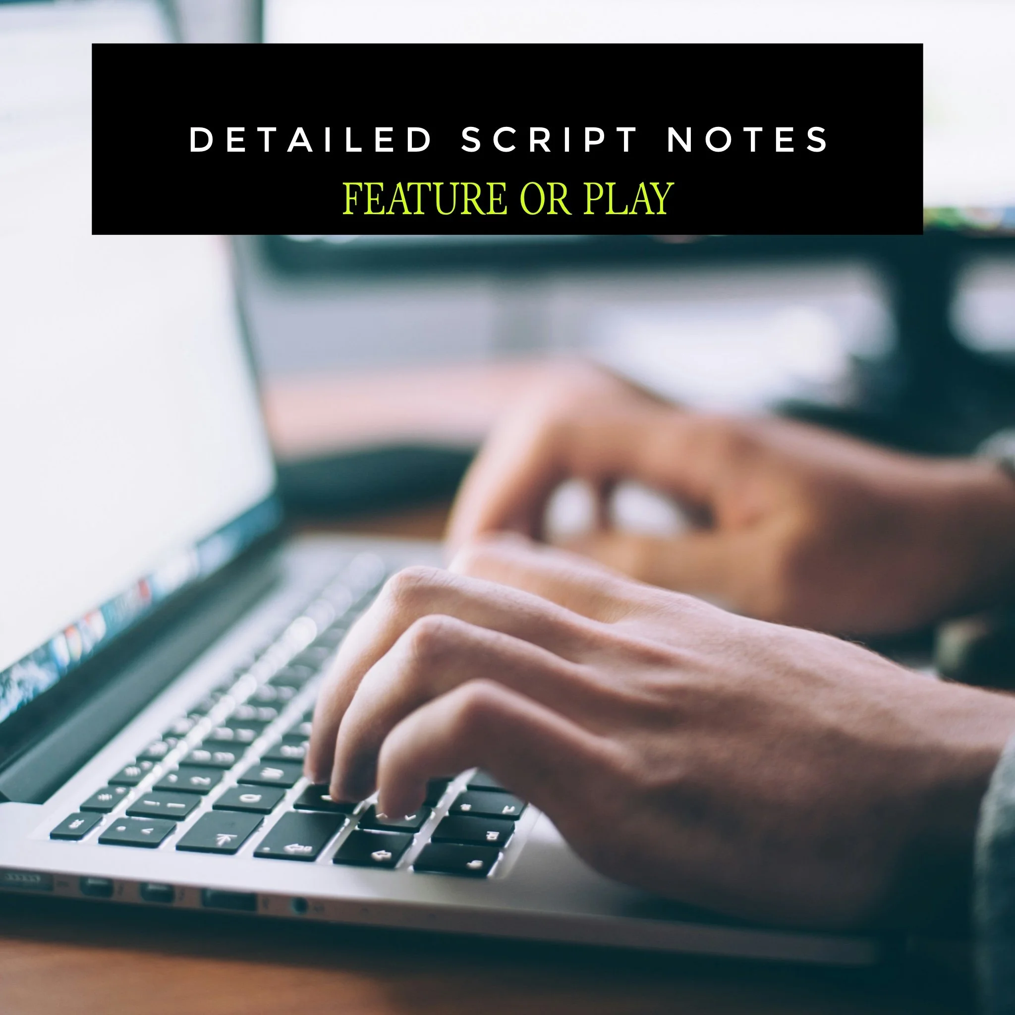 Get feedback from a pro. Script must be under 60 pgs. You get 3-5 pages of notes, plus a 60 min zoom script chat to discuss in depth.